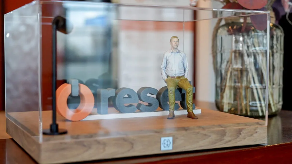 Duplify produceert prachtige 3D beeldjes voor zakelijke gelegenheden met een bedrijfslogo en personen – inclusief museumkwaliteit vitrine.